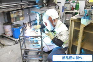 | 作業者の負担軽減を行うため、設備の改善や部品棚を製作します。 | |