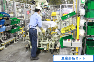 ![]() 生産工程へ供給する部品を台車にセットしています |